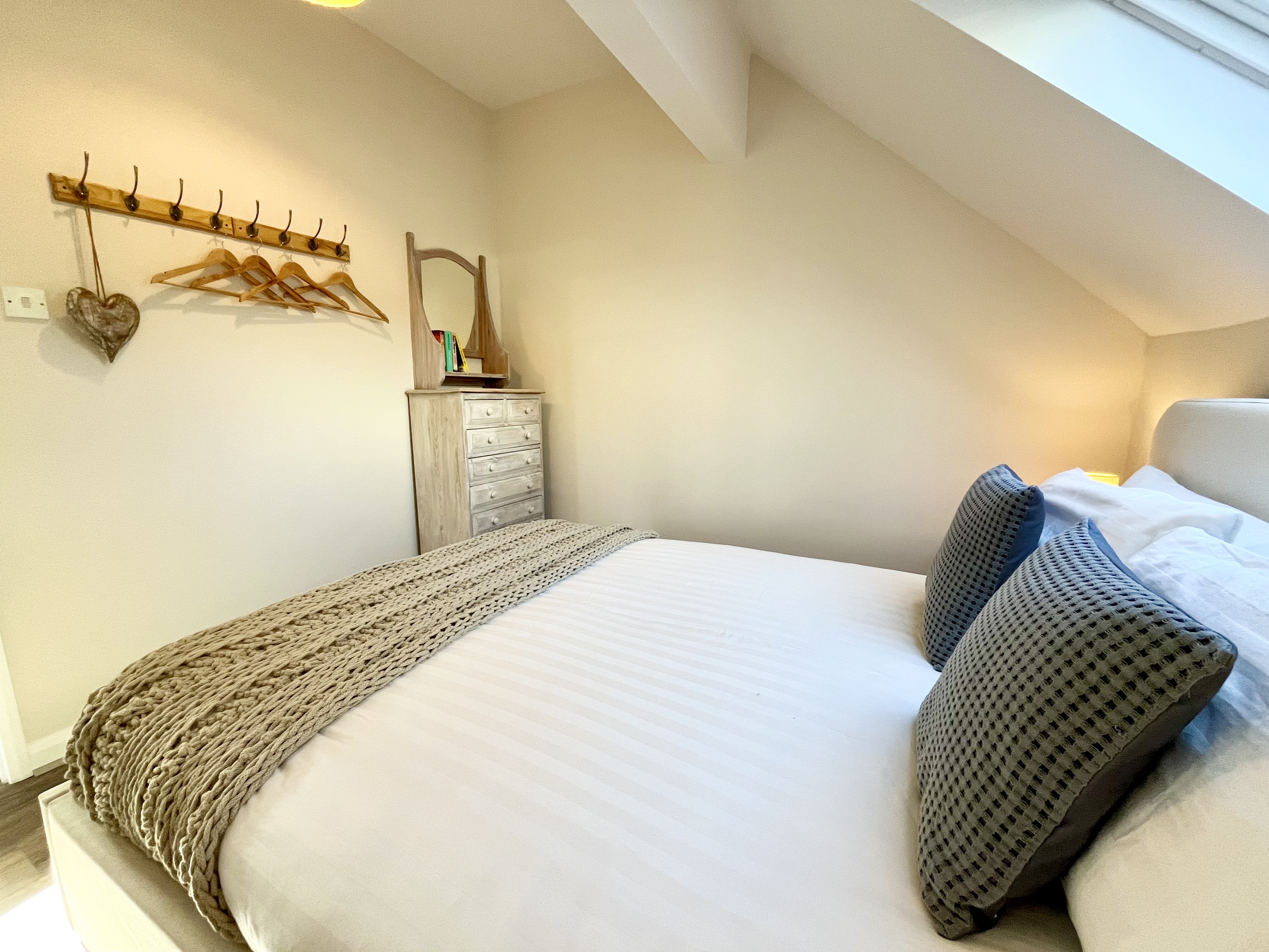 Master bedroom with a king size bed - sleep deeply on a new luxury Emma mattress under crisp cotton rich bedding