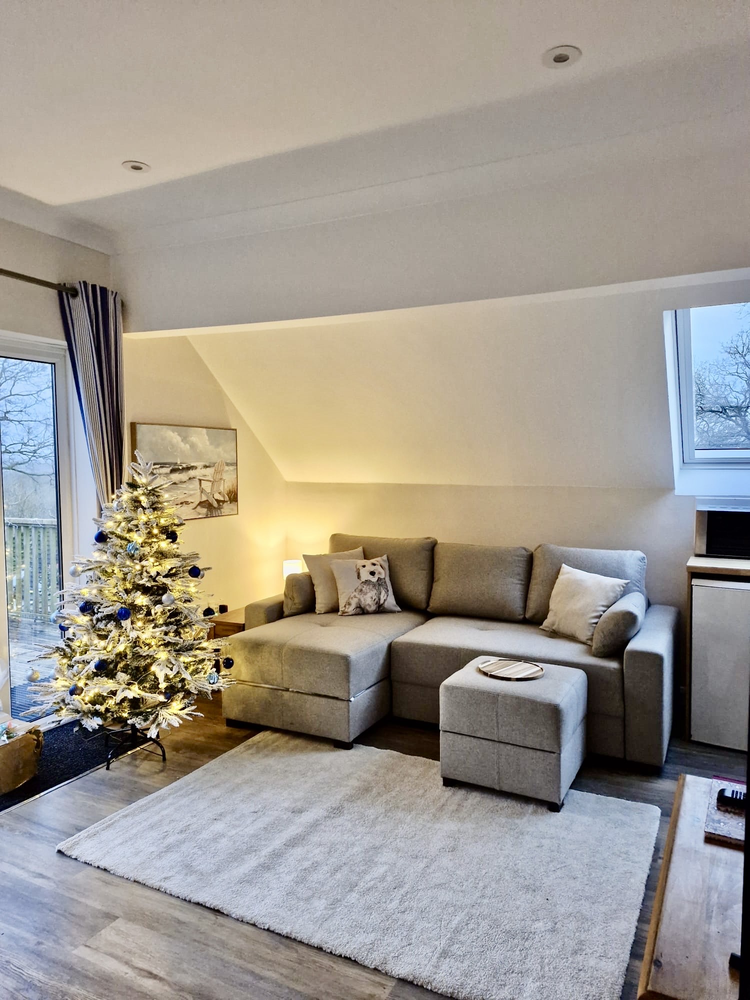 Cosy open plan living area with a king size sofa bed